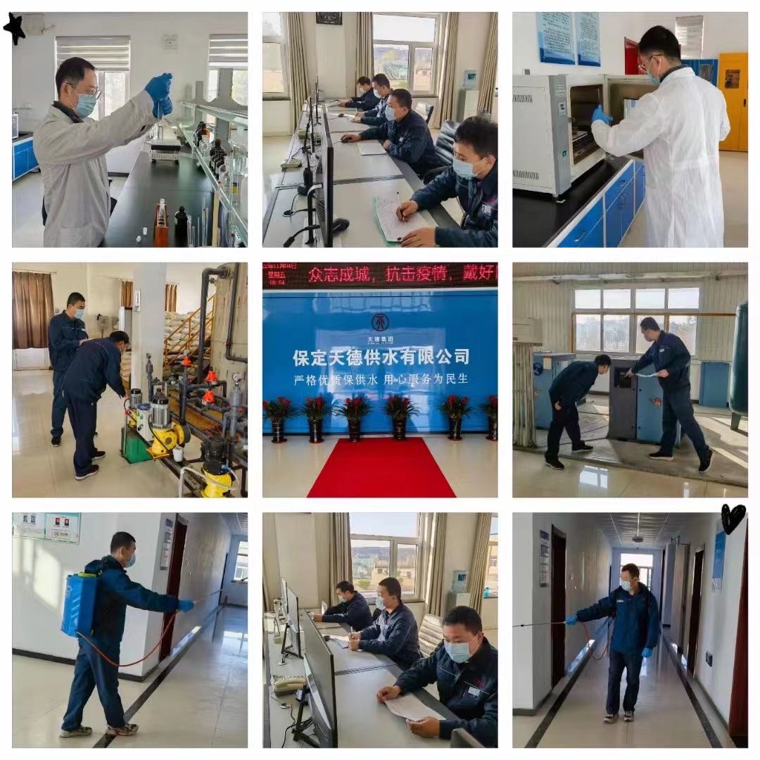 “民生重于泰山,疫情就是命令,防控就是责任!”在这场没有硝烟的战斗中,天德供水全体职工积极响应白沟新城关于抗疫情保供水工作要求,公司总经理徐婕团结带领公司全体职工冲锋在前,始终站在抗“疫”第一线、供水第一线,为了确保供水安全,降低疫情风险,地表水厂实行全封闭式管理,一手抓疫情防控,一手保水质安全。截止发稿时,大家已经在岗位上连续坚守了整整60天,他们用实际行动践行了天德人的责任担当和舍小家保大家的高尚情怀。